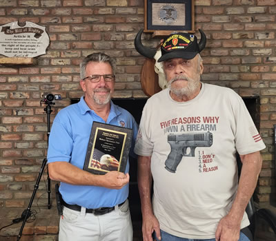 The Arizona Rangers used to come to our range to shoot but they now have their own range to shoot at. They have never forgotten us and wish our range to continue on in the fabulous glory of being available for all to shoot at. When they heard the call for help they stepped up and brought us a check for $500.00. This donation was presented at the August meeting to our President, Fred Bunge. We would like to give them a big round of applause and sincere thank you.