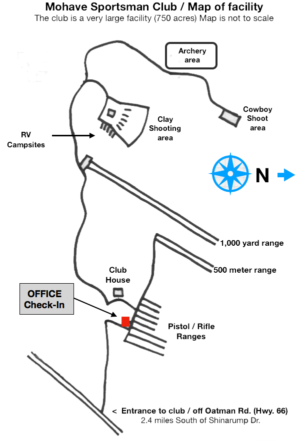 Our club covers approximately 750 acres. We are a large facility with one long primary dirt road that connects all shooting areas of the property. The roads are all dirt with the exception of the entrance road. This road is asphalt and only runs from the entrance to the office/check-in. Speed limit is 15 mph and we ask that you be courteous with others on the road with you.